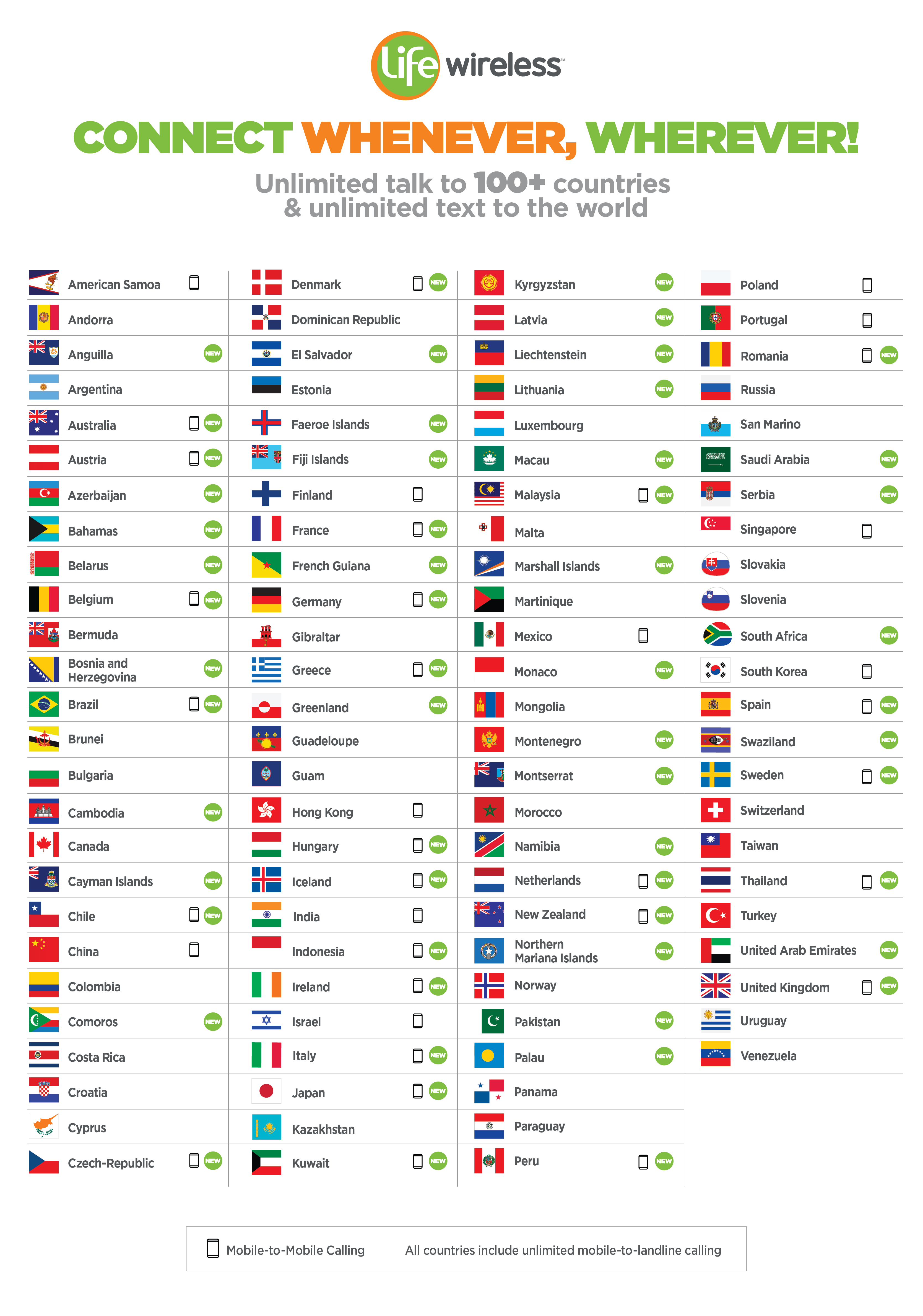 Regardless of where they are in the world, staying in touch with your family and friends should be easy. Check below to see how much it will cost to use your Life Wireless plan to make international calls.